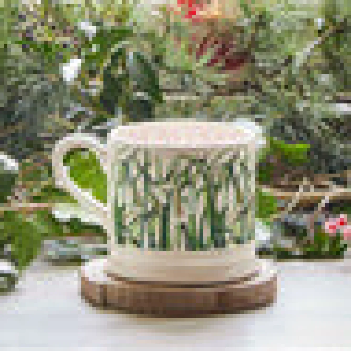 Admire the gently bowing heads of the first spring blooms over an espresso in your Snowdrop Small Mug.