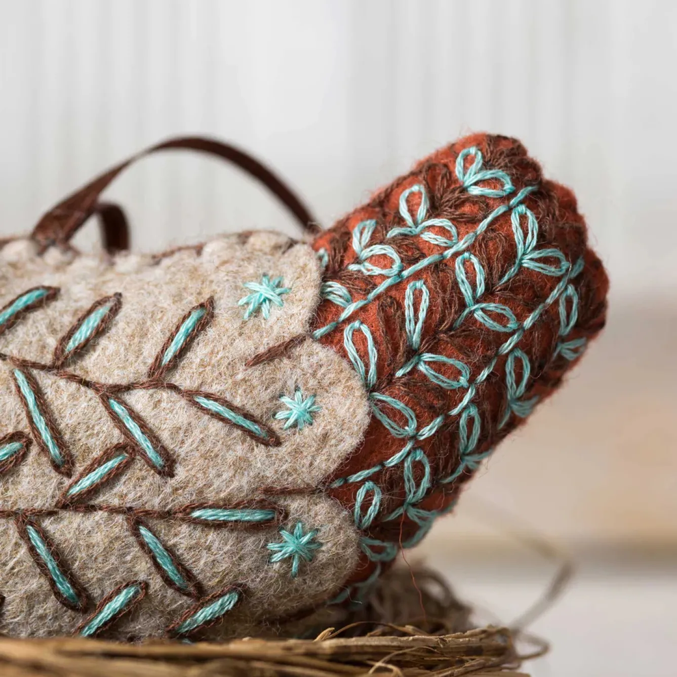 All Corinne’s kits include everything you need (with the exception of scissors!) to realise the project including soft wool mix felt, embroidery thread, a needle, toy filling and ribbon.
