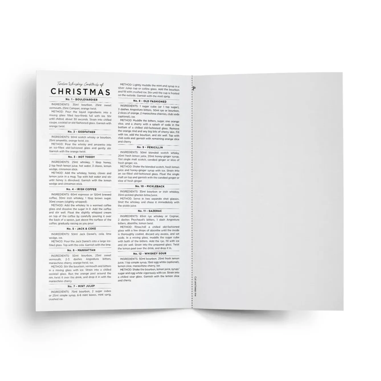 - Ingredients and method for all 12 cocktails inside.