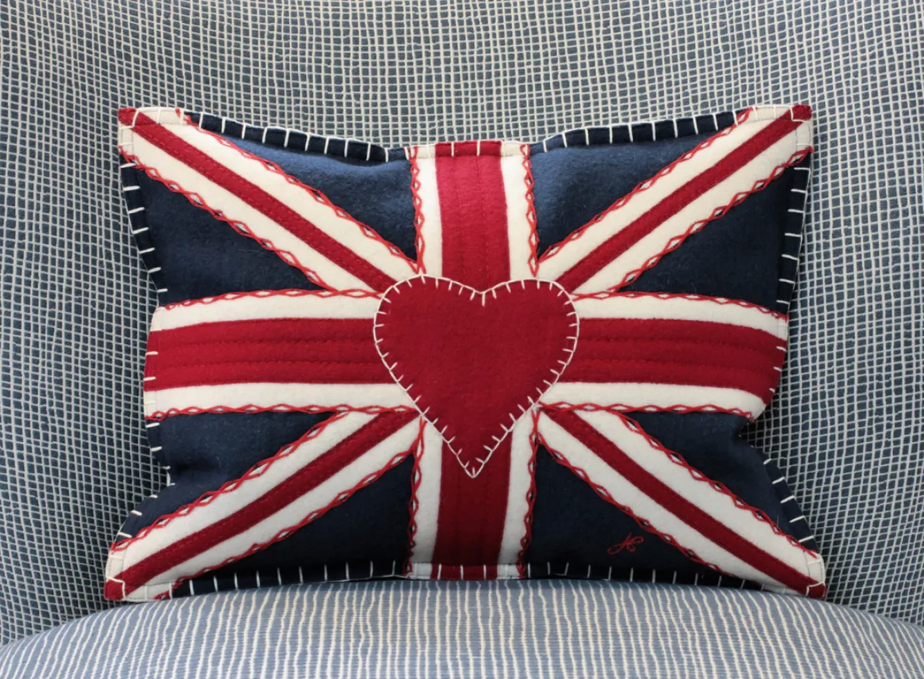 A smaller version of Jan’s iconic Union Jack Cushion! All the same attributes, including the central heart appliqué, but scaled down into a smaller, cuter package!