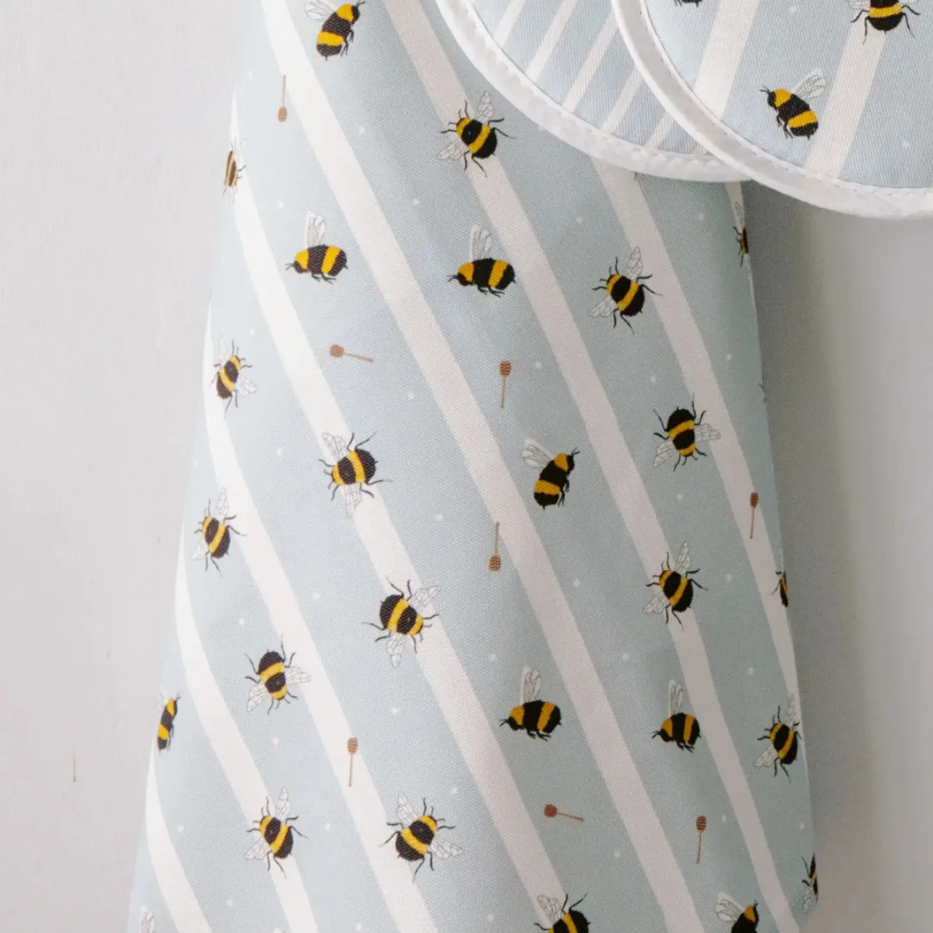 Laura Fisher’s honey bee design is perfect for bringing a bright buzz to any kitchen, featuring British honey bees on their signature pastel blue pinstripe.
