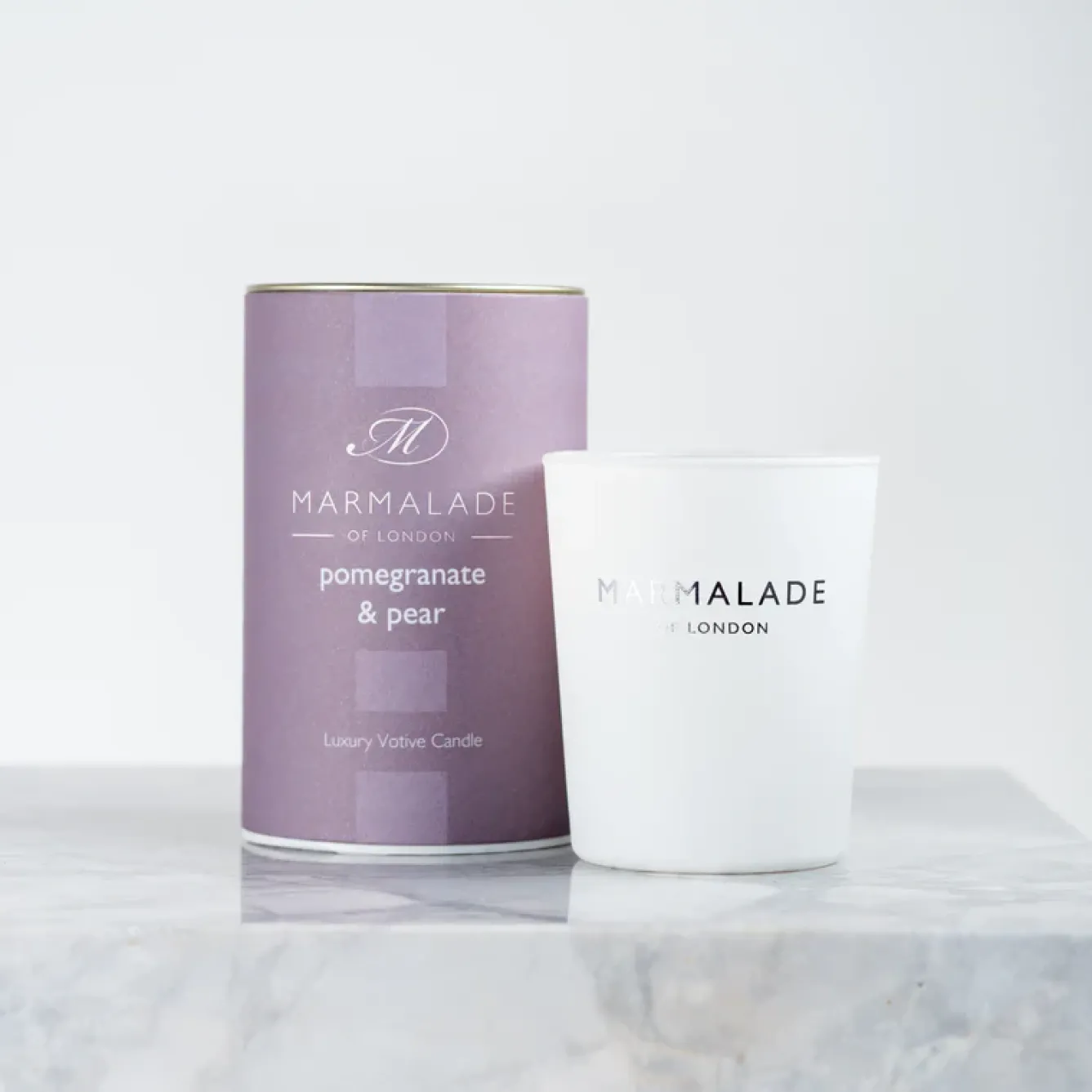A fresh, pomegranate fragrance enhanced by notes of Tart Cranberry, Green Pear, Apple resting on a base of Precious Woods and Dry Fruits – 110g / 4oz burn time 20 hours