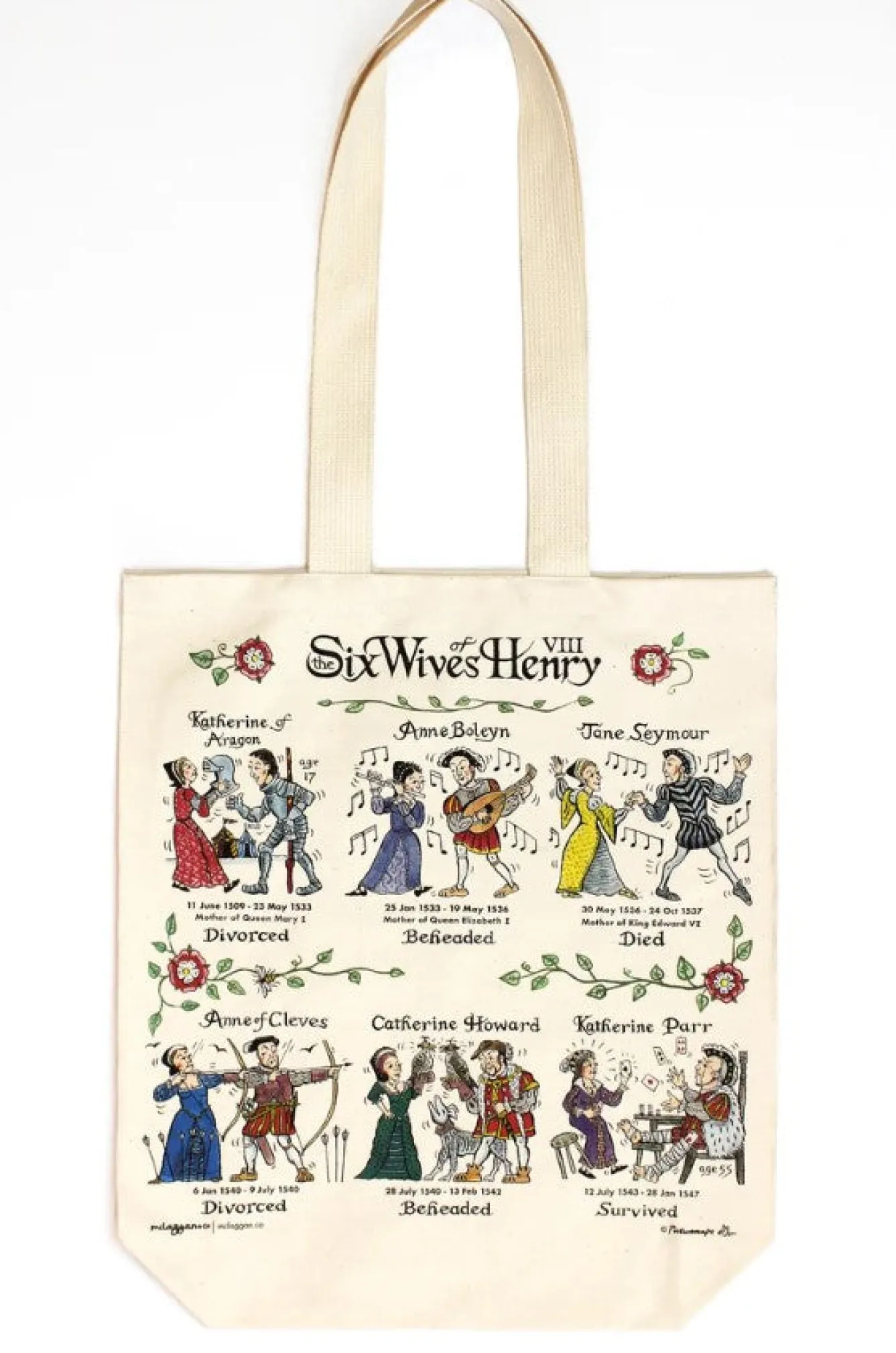 From Katherine of Aragon to Katherine Parr this playful design details the lives (and deaths) of the Six Wives of Henry VIII.
