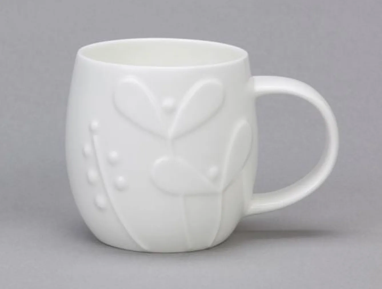 The Plum Seedling is part of our popular white bone china range with raised 3D patterns. It has a distinct plum-like shape which is comforting to hold, and features a seedling motif. And it makes a simple cup of tea or coffee feel that little bit more special.