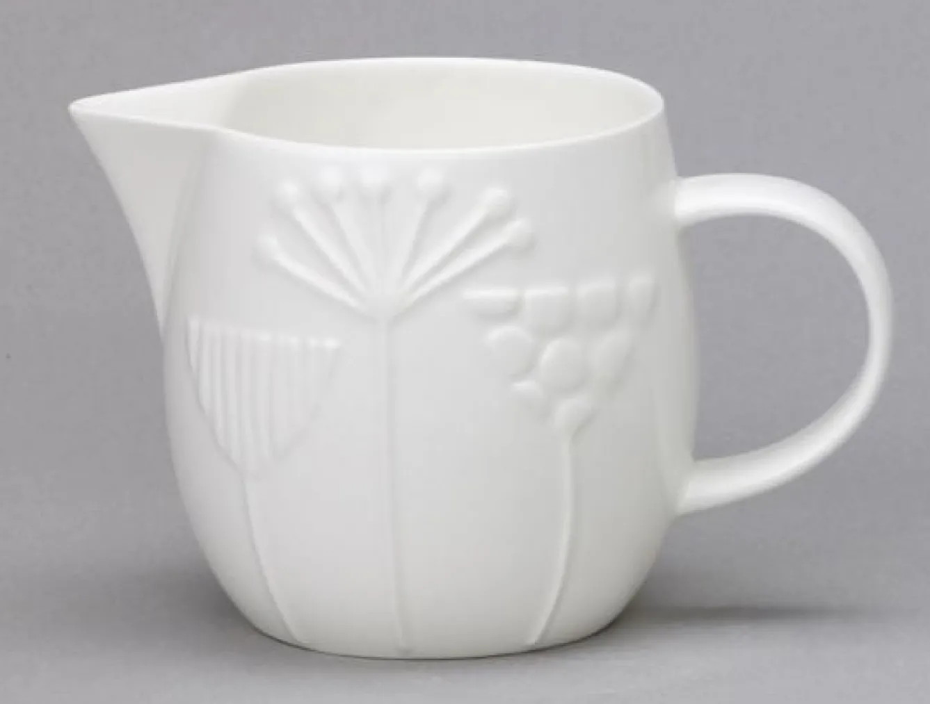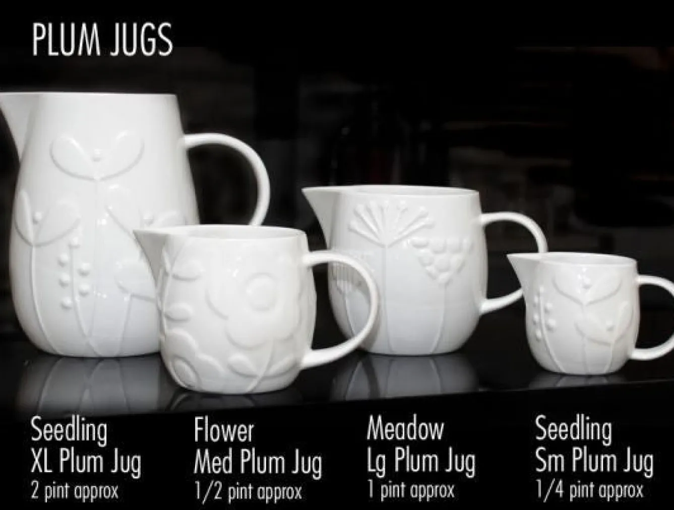 This jug has a pretty floral pattern which is also available as a Plum Flower mug. The jugs mix and match splendidly with our other white bone china ranges. This mug-sized jug is perfect for milk, cream or even juice.