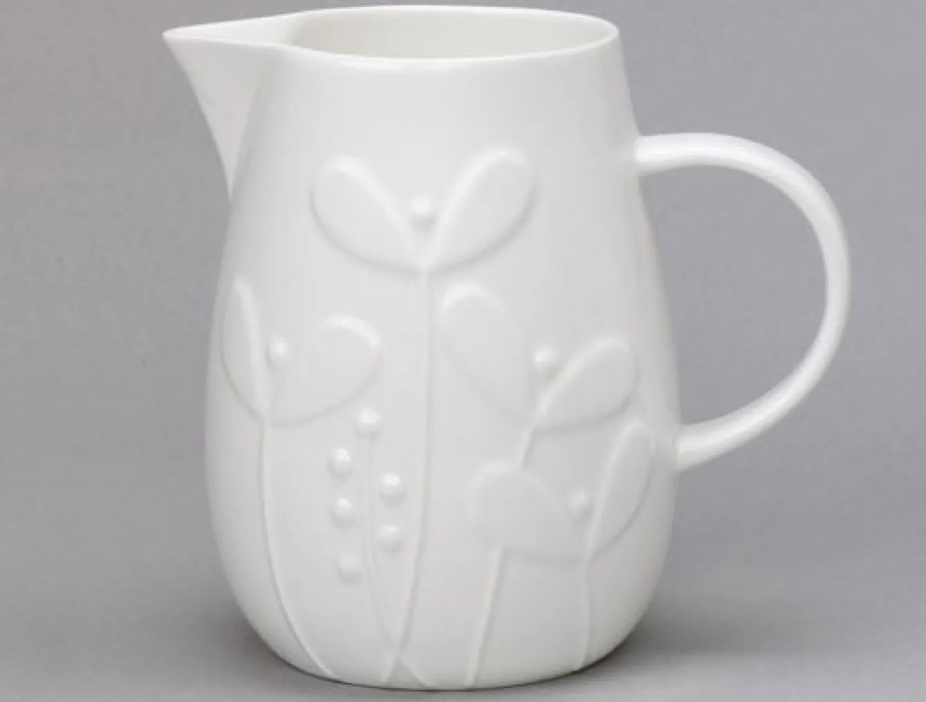The bone-china jugs are made the traditional way, starting with liquid clay poured into a mould by hand. The jug then goes through around 20 hand processes, as well as three firings in a kiln before it’s ready. Because they’re made by hand, the jugs may differ from each other very slightly, which we think adds to their charm and character.