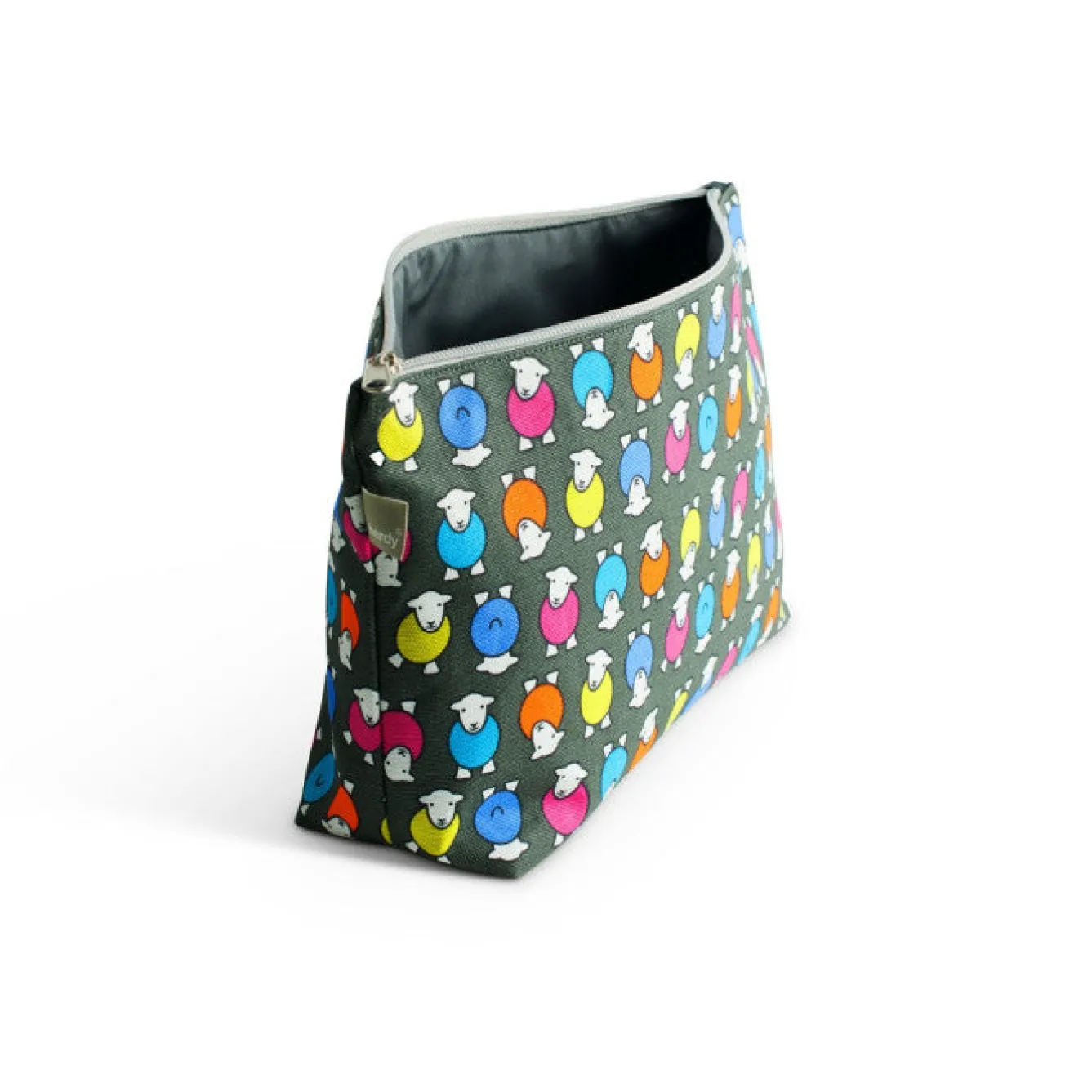 A cute and colourful Herdy army will keep you organised on your travels. This bag is the perfect size for holding your makeup when you’re on the go. It has a silver zip and is made from wipe clean, acrylic finish, cotton fabric with a cotton lining. Approx size: 30cm/12in x 18cm/7in.