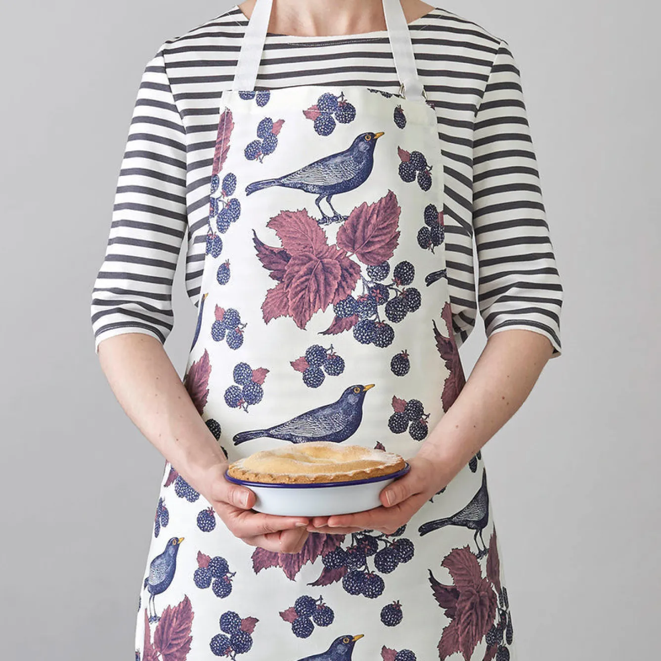Master bakers and pastry whizzes will adore our juicy Blackbird & Bramble apron. Printed on 100% cotton, it’s the perfect way to protect your clothes while crimping crusts and perfecting your puff.