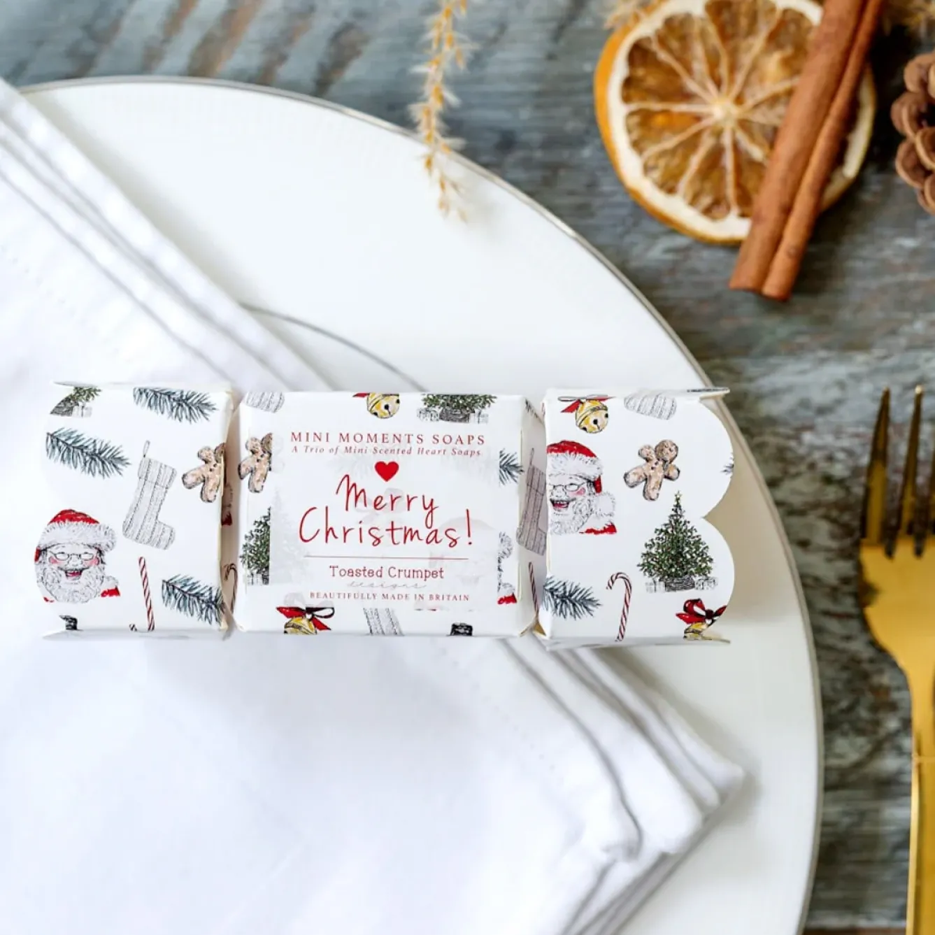 Perfect as a gift or to keep, these festive crackers contain three heart shaped luxury soaps which are enriched with Shea butter and proudly made in Britain