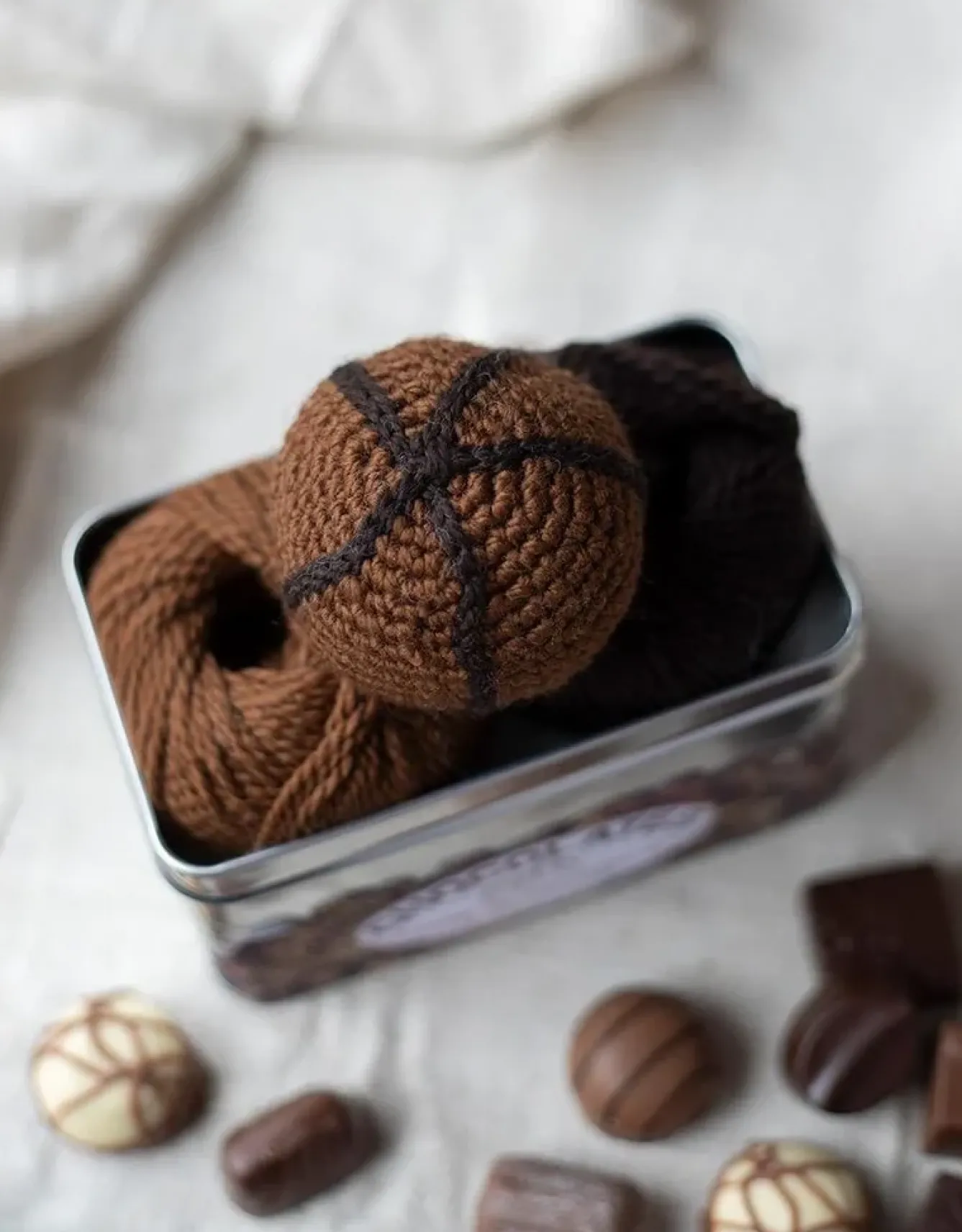 Introducing TOFT’s hand-crafted range of crochet confectionery, perfect for gifting and packed into a collectable keepsake tin, for storing your tools and notions inside, or for forming part of a play kitchen when gifted with crocheted food inside. This delicious gourmet crochet kit includes the yarn to make one cute Chocolate character or four individual chocolates for a plateful of play food. Whether you are looking to indulge yourself or a loved one, this tin of goodies is sure to delight the senses.