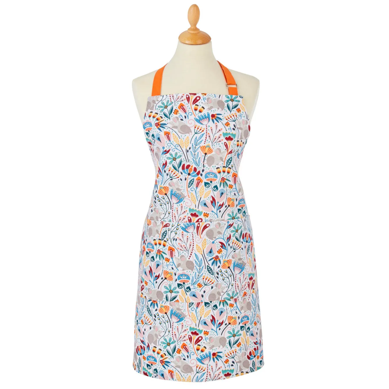 This cotton apron in the Field Mice design has playful mice amongst a background of vibrant flowers.