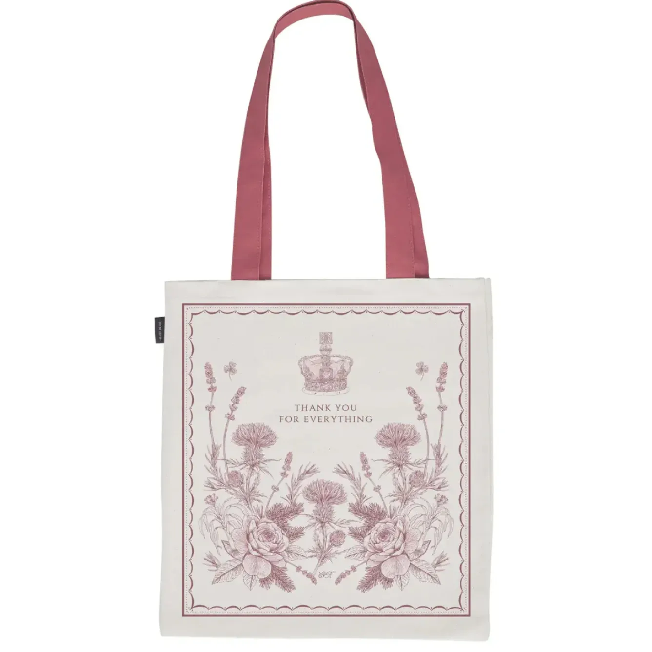 The Queen’s Commemorative canvas tote bag celebrates the life of The Queen. The design features the iconic crown, surrounded by a spray of flowers, representing England, Scotland, Wales and Ireland, along with pine from the gardens of Balmoral and lavender and rosemary from the grounds of Windsor Castle. A simple message on each item reads ’Thank you for Everything’. The words of a very wise little Paddington Bear, and a sentiment that is felt around the world. A special piece to mark an historic occasion.